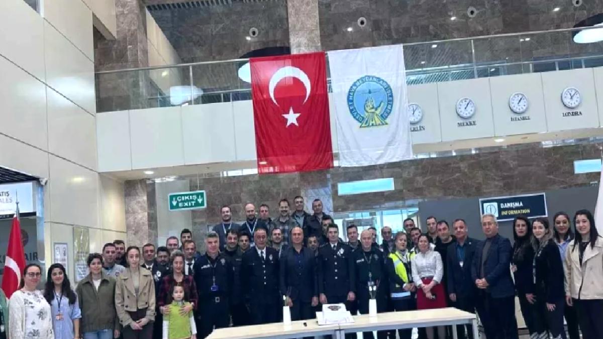 Devlet Hava Meydanları İşletmesi (DHMİ) Sinop Havalimanı Müdürlüğü, Türk Polis Teşkilatı’nın 180. kuruluş yıl dönümü münasebetiyle havalimanında vazifeli emniyet mensuplarına sürpriz kutlama gerçekleştirdi.